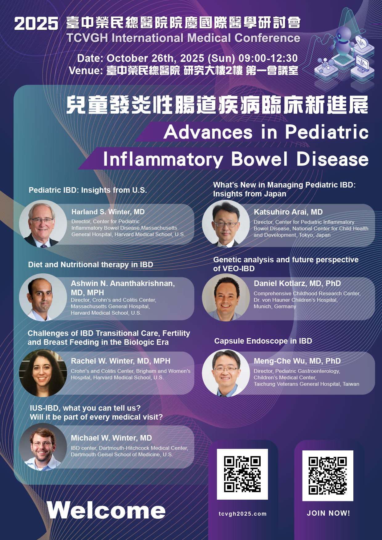 竭誠歡迎醫界同好蒞臨參與,本活動特別邀請Harland S. Winter 等六位來自美國、德國、日本等國外專家學者與會。演講內容豐富精彩 敬邀大家今年秋天共襄與會!